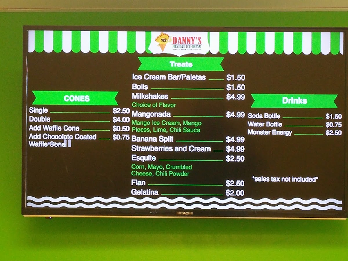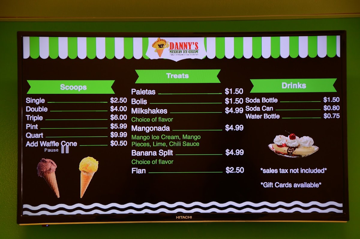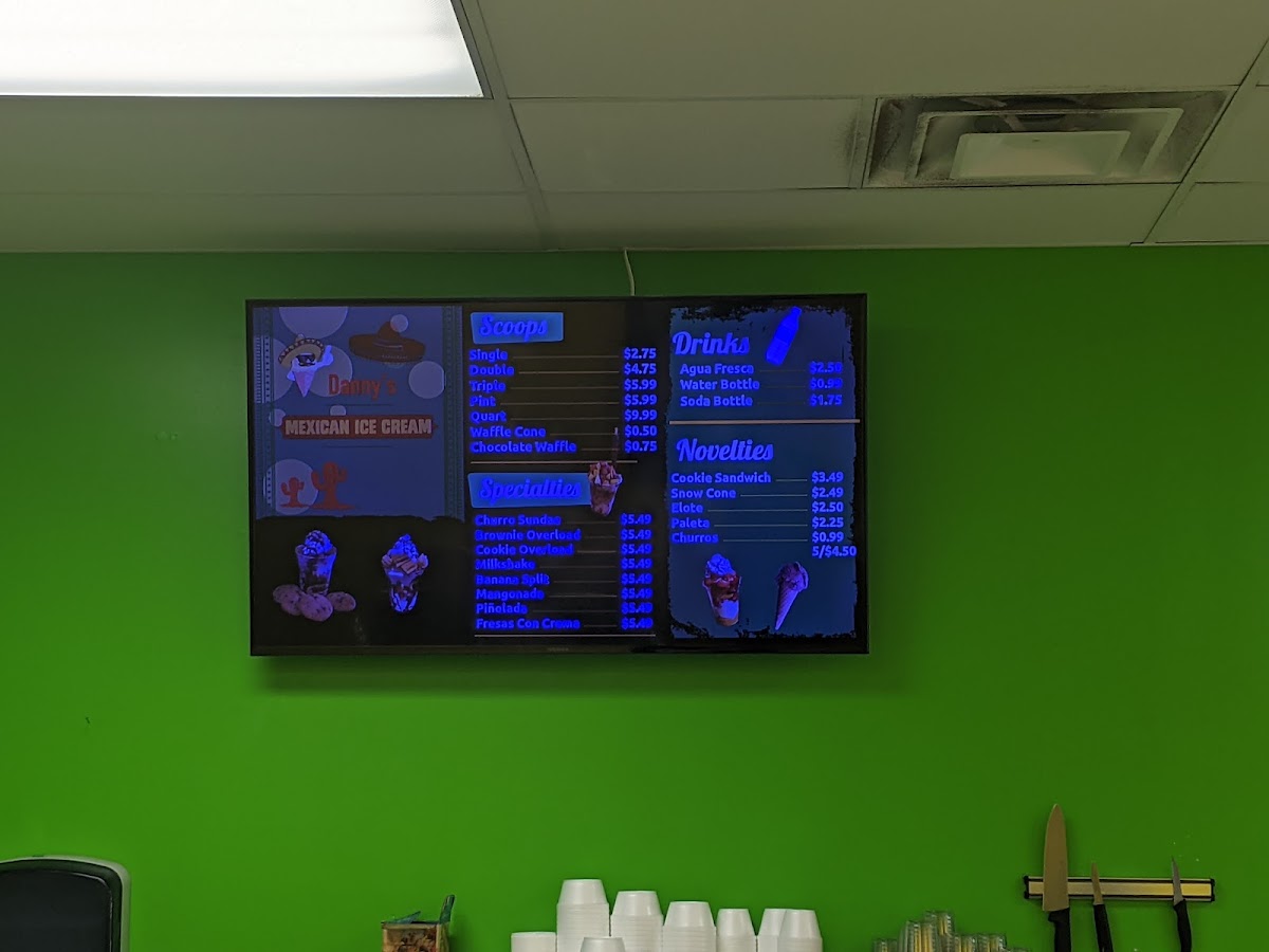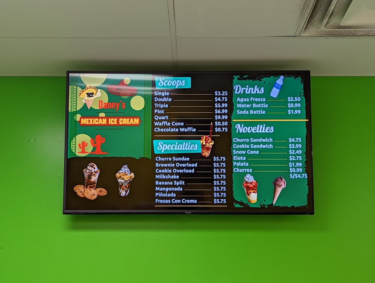 Danny's Mexican Ice Cream Menu